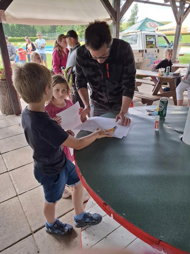 Dnes jsme uspořádali pro tatínky našich žáků ke Dni otců stopovanou.Tatínci a děti po cestě plnili úkoly, nakonec všichni hledali poklad ( maminky