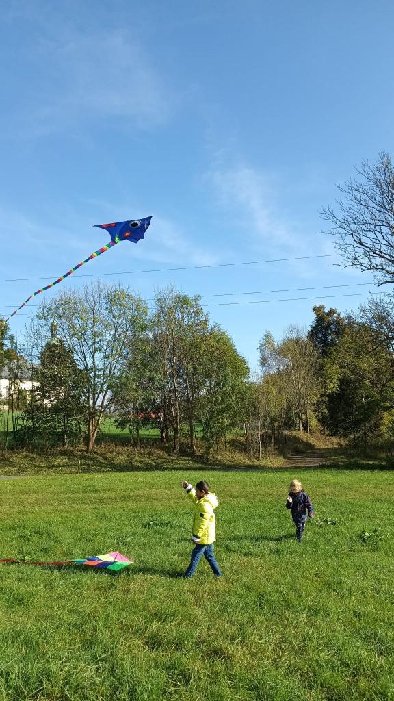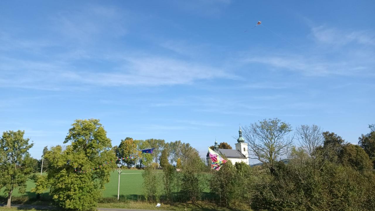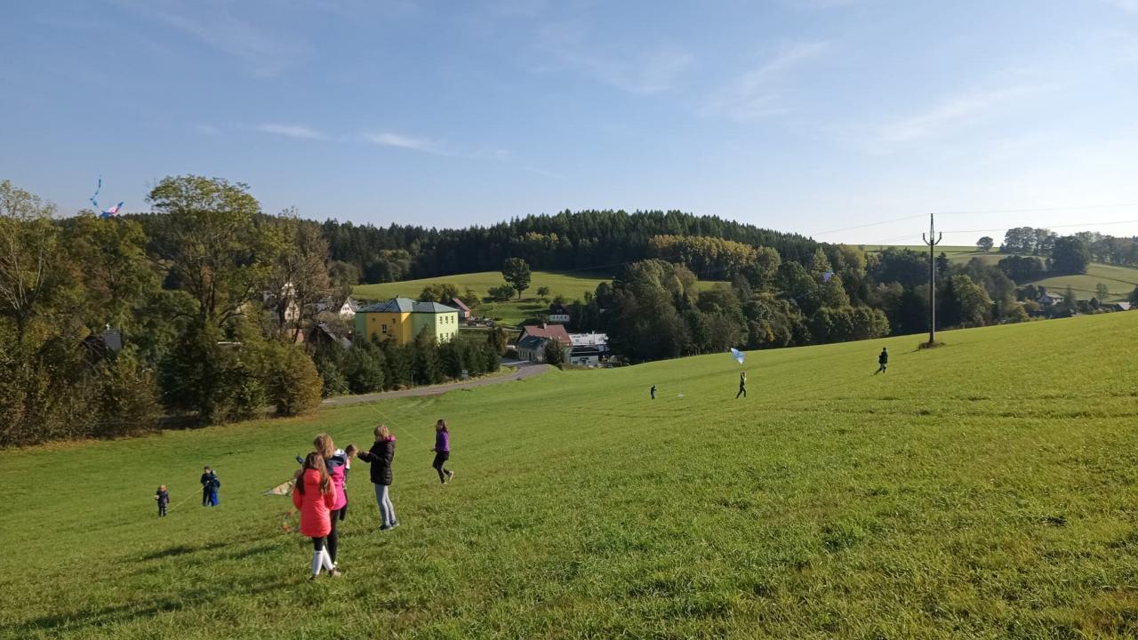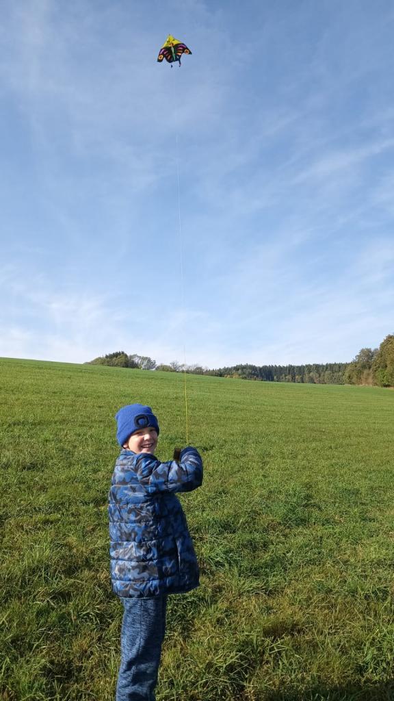 Dnešní drakiáda Vítr nám přál a draci se vznášeli vysoko