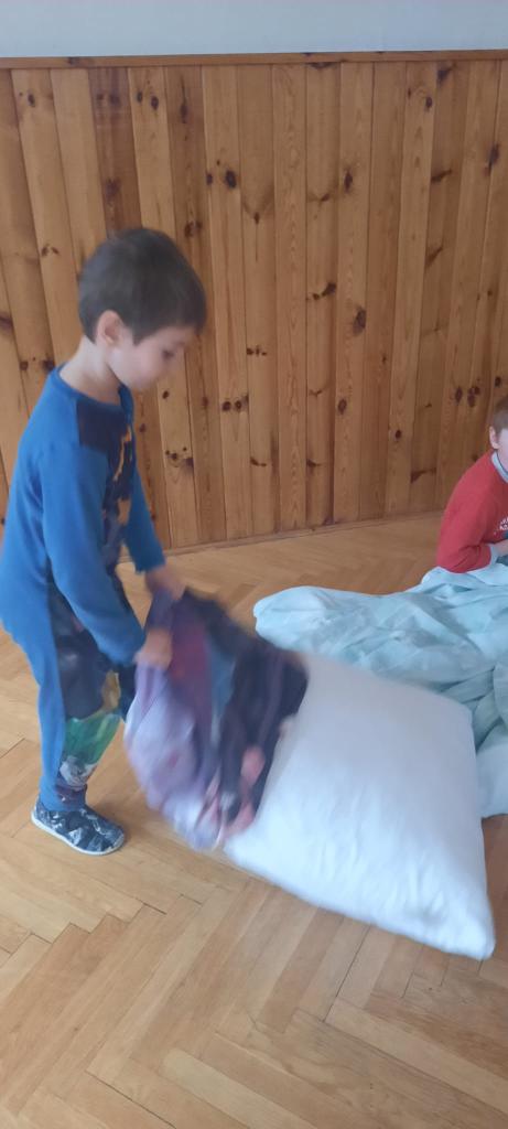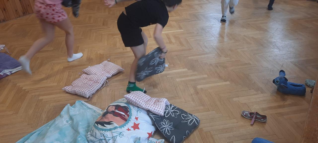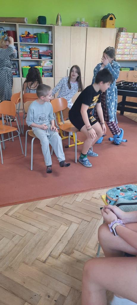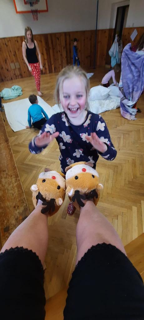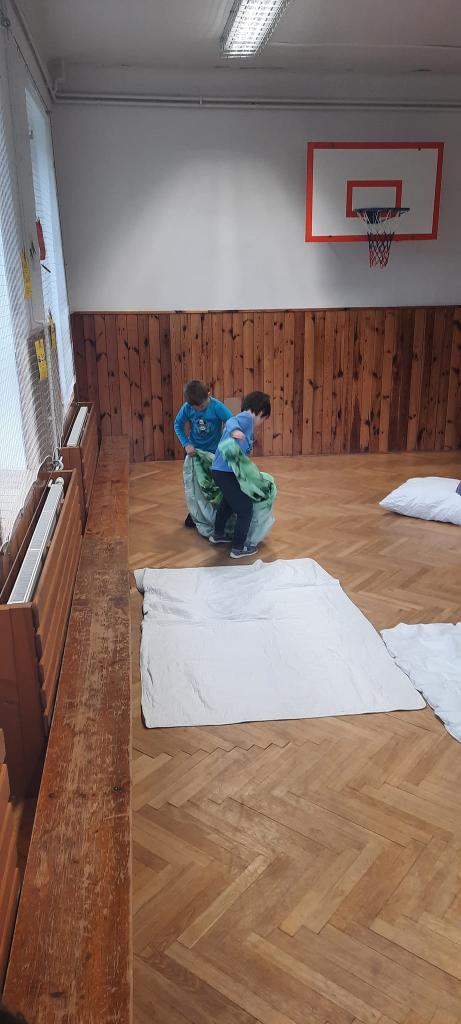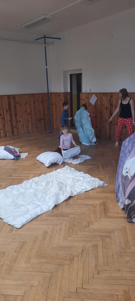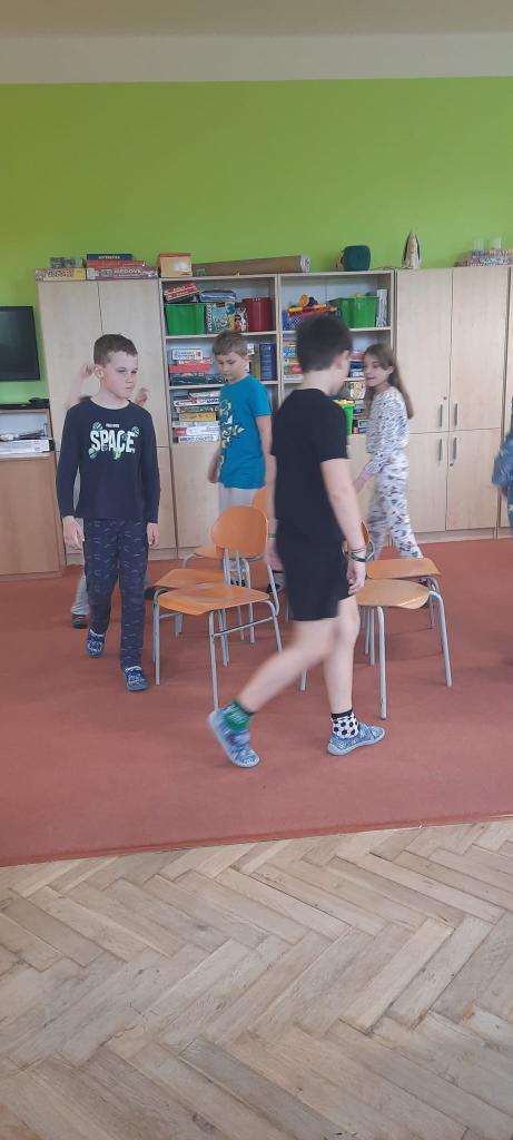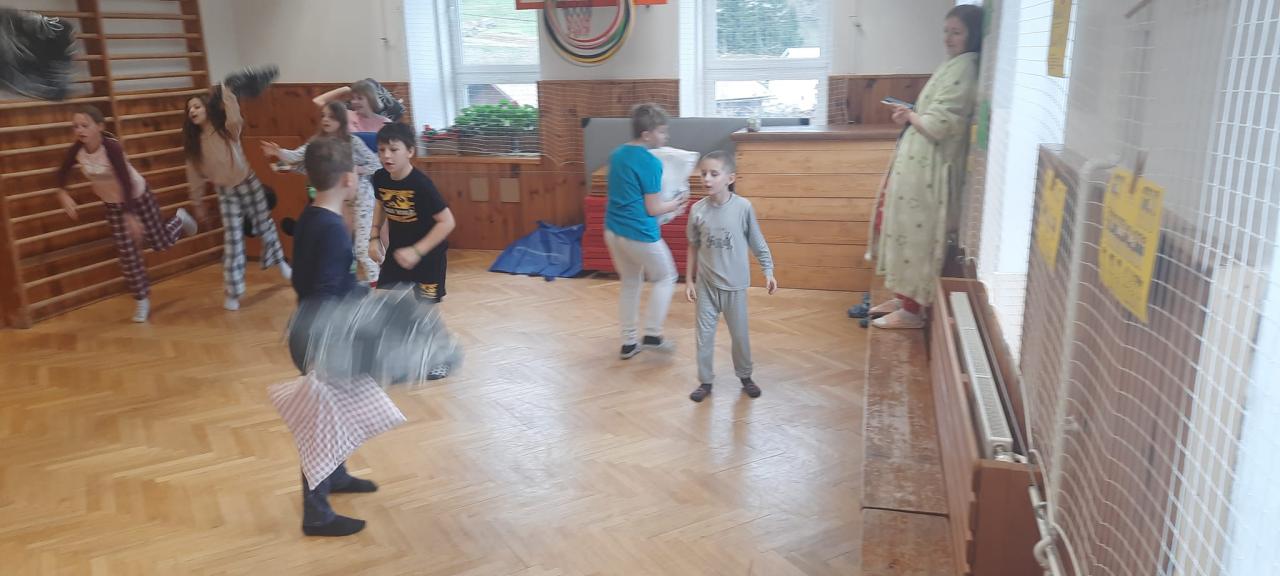Dnes jsme měli ve škole "Pyžamový den".1.a 2.hodinu jsme se učili a pak jsme se rozdělili do družstev a závodili- v povlékání polštářů a peřin, hod polštářem na cíl....tancování s vyřazováním kolem židli a další soutěže 😃Děti byly nadšené snažily se .👍👍👍